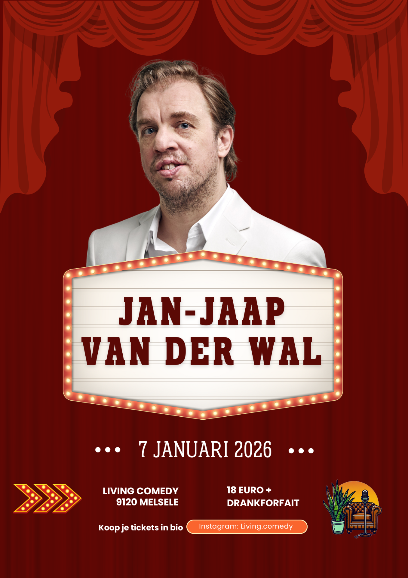 Jan Jaap van der Wal is al bijna dertig jaar comedian en maakte sinds 2015 al vier avondvullende shows in Vlaanderen, waaronder de veelgeprezen verkiezingsconference 'Geen Stem'. Op televisie maakte hij furore als jurylid van De Slimste Mens ter Wereld en als presentator van De Ideale Wereld en Jan Jaap Op Zondag.